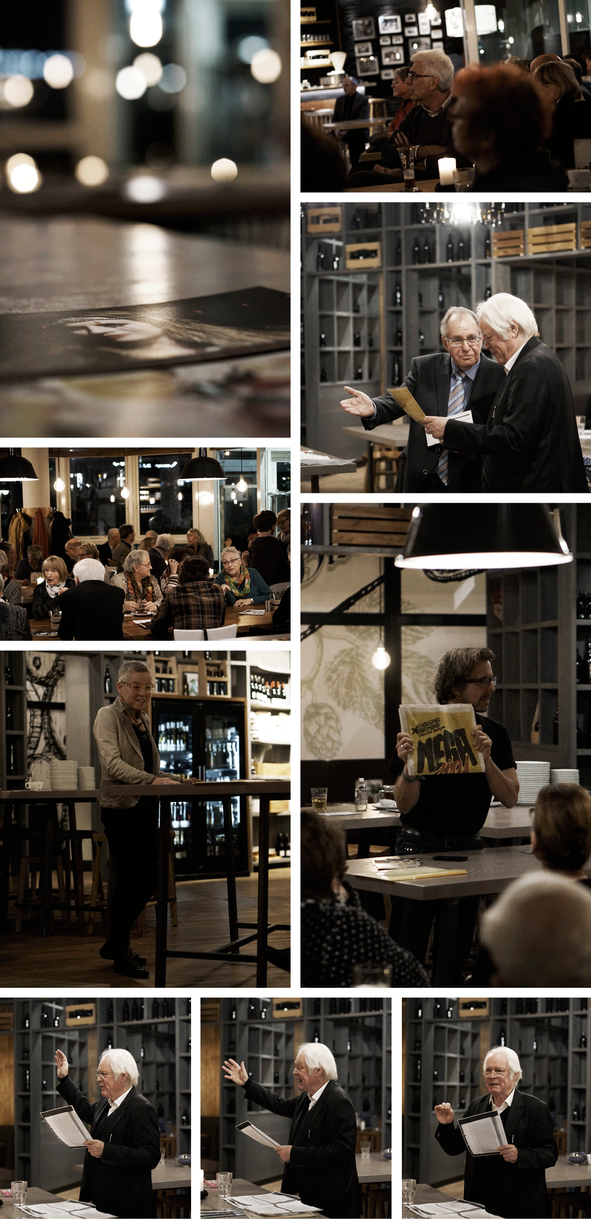 Nach dem geschäftlichen Teil wurde die Bühne frei für Andreas Weißert, der zum Ehrenmitglied der Dortmunder für ihr Schauspiel ernannt wurde. Die Laudatio von Heinz Dingerdissen beschrieb ein spannendes, vielgestaltiges Leben. Andreas Weißert griff nach den Schilderungen einige Punkte auf und erzählte mit seiner raumfüllenden Stimme herrliche Anekdoten, die alle Anwesenden zum Lachen brachten. Anschließend gab er einen Auszug aus seiner Silvesterlesung zum Thema „Schicksal“ und fesselte die Dortmunder Schauspielfreunde mit berühmten Balladen.